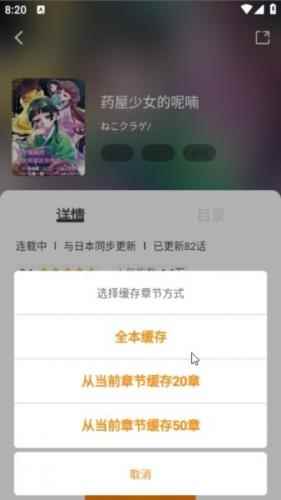 2、然后在这里点击右下角的下载,可以选择全本缓存和缓存部分章节。