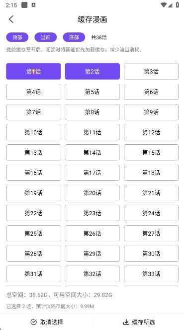 3、再接着根据实际需求,选择需要缓存的漫画章节。