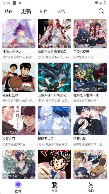 2、每日实时更新最新漫画章节。将你最喜欢的漫画添加到书架上,享受阅读漫画的乐趣。